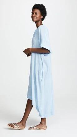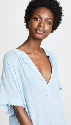 Crinkled cotton gauze lends an airy feel to this simple 9seed cover-up caftan. A raw hem gives the piece a more casual feel (which is exactly what you want on vacation, right?)