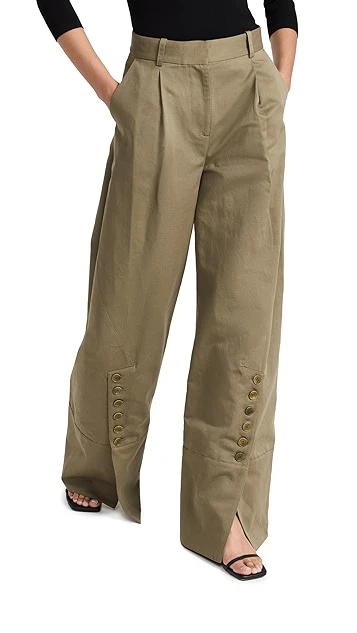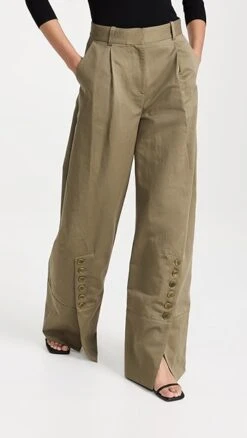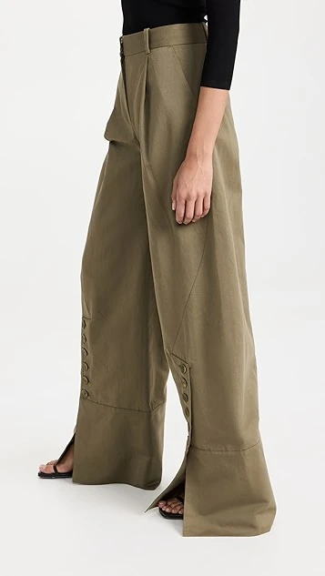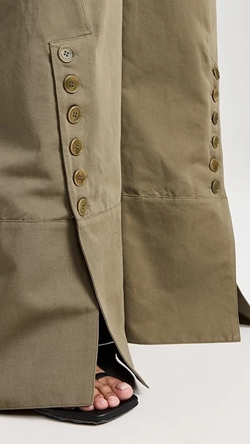 - Button closures at the ankle cuffs