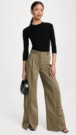 - Wide-leg silhouette