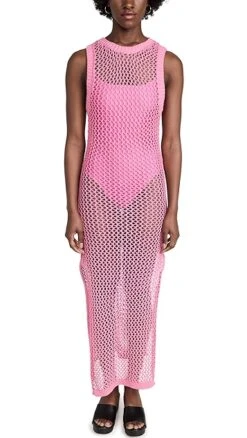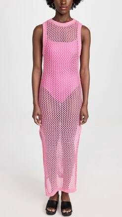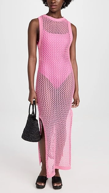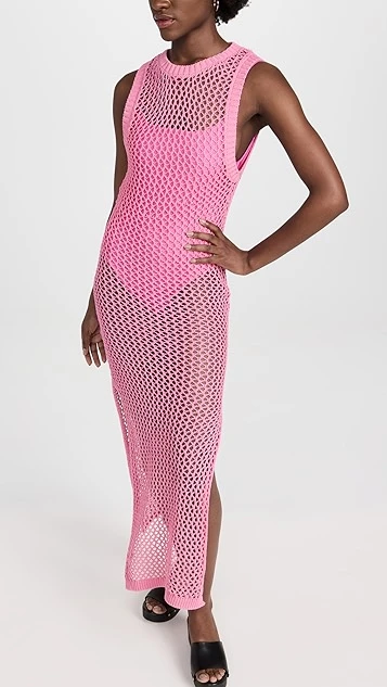 Free and breezy crochet composes this vibrantly colored Beach Riot cover up, a shore-ready layering piece in a classic sheath dress silhouette.