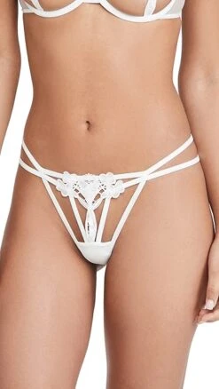 Delicate guipure lace embellishes this strappy Bluebella thong.