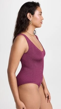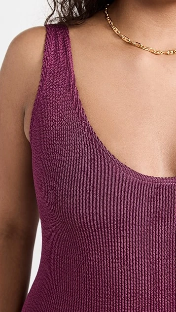 A simple yet stylish option for sunny seaside days, this BOUND by bond-eye Australia one-piece swimsuit is cut from crinkly fabric and designed with a deep scoop back.