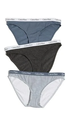 Add something seriously comfortable to your top drawer with this 3-pack of Calvin Klein Underwear panties, which are cut from a soft cotton blend and accented with the label’s signature logo lettering at the waistband.