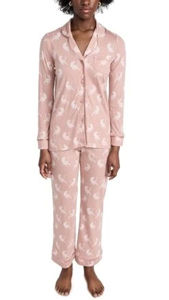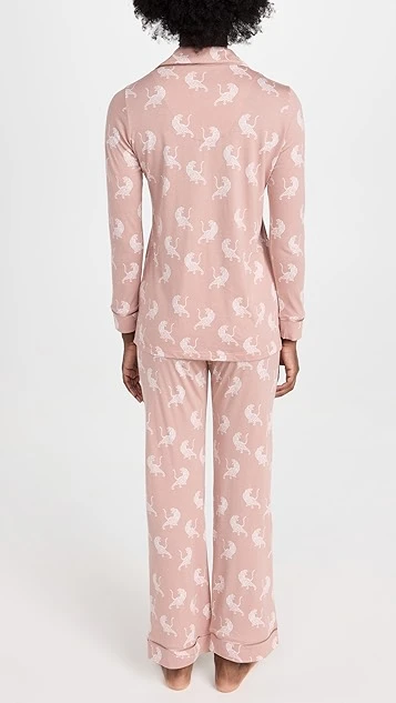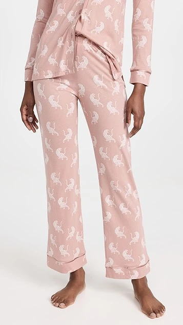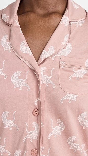 A soft jersey Cosabella pajama set with a classic look courtesy of the tonal trim and piping. An allover tiger pattern provides a touch of signature style.