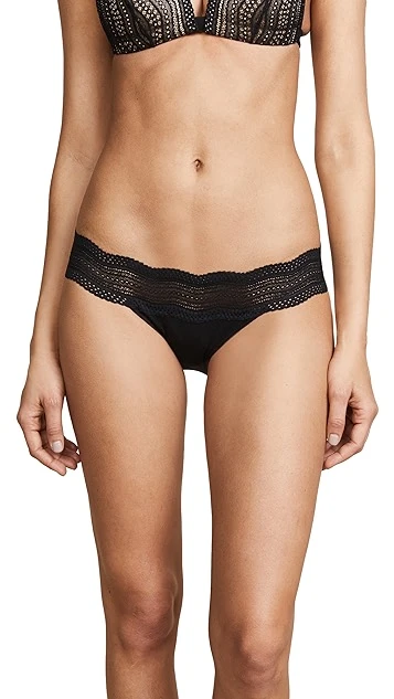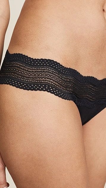 Lace and mesh detail the waist of cozy Cosabella panties, which are rendered in soft jersey.