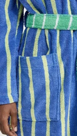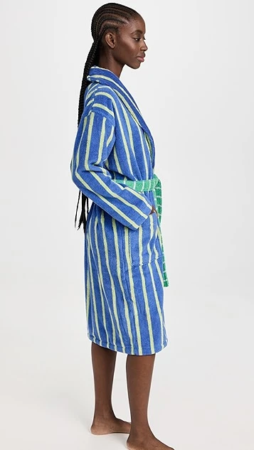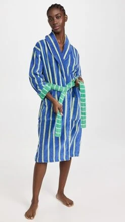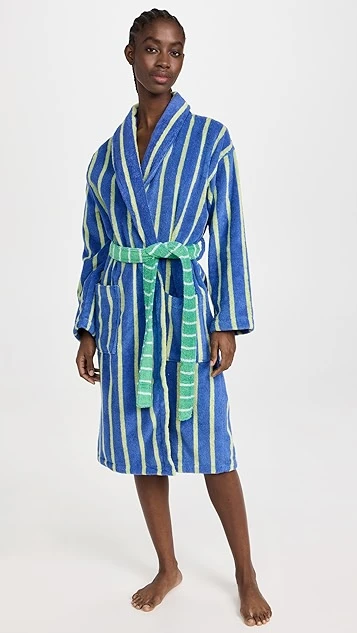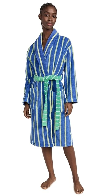 Dusen Dusen’s signature super-soft terry composes this comfy robe, which is accented with precise stripes and a charming touch of contrast trim.