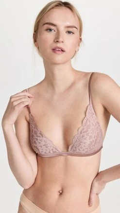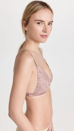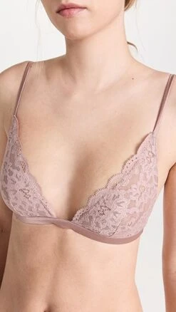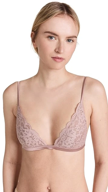 A Fleur du Mal bra crafted from sheer mesh, featuring romantic lace appliques and luxe satin straps. Pair it with the labelโs matching thong for an elegant set.