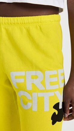 A slim pair of sweatpants from the specialists in bold and comfortable basics at FREECITY, featuring a 3/4 cut, ribbed cuffs, and stand-out branding.