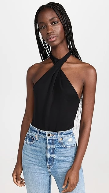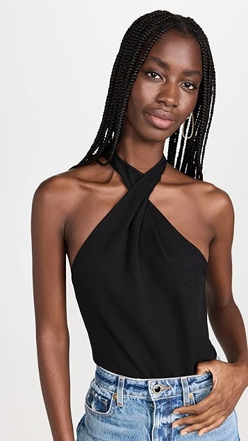 - Halter mock neckline