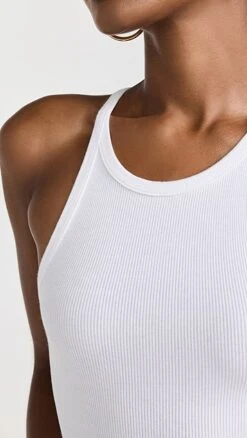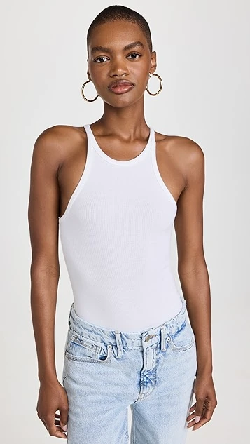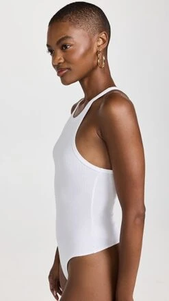 Neutrally colored and featuring a sporty ribbed knit construction, this Good American Essentials bodysuit will be a versatile addition to any layered look.