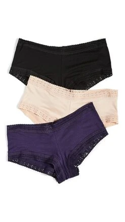A 3 pack of your favorite, stock-up worthy panties. These Hanky Panky Boy Shorts come in various classic shades and are trimmed in lace.