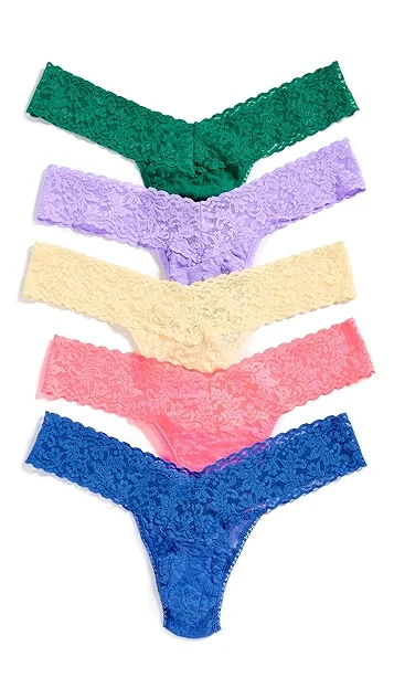 A 5 pack of your favorite, stock-up worthy panties. These Hanky Panky thongs come in a variety of colors to pretty up your underwear drawer.