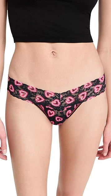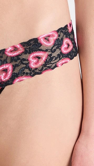 A low-rise Text Me thong from the lingerie specialists at Hanky Panky, crafted from soft, supple lace and detailed with an allover heart print.