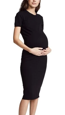 A lightweight knit HATCH dress with a T-shirt style bodice that flows into a simple skirt. The tailored silhouette has a relaxed fit that allows the piece to be worn comfortably at any time, even during pregnancy.