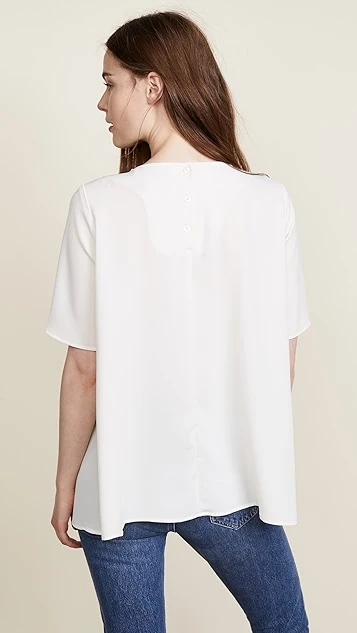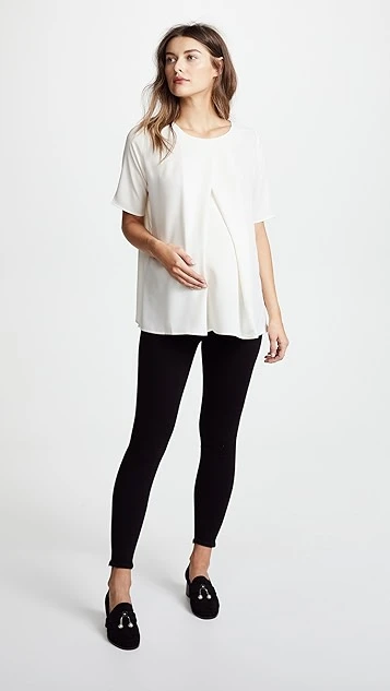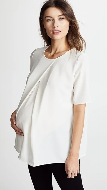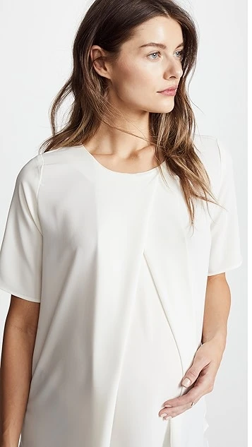 An effortless and versatile maternity top that can be worn before, during, and after pregnancy, this swingy HATCH blouse is styled with overlapping pleats for a subtly asymmetrical look.