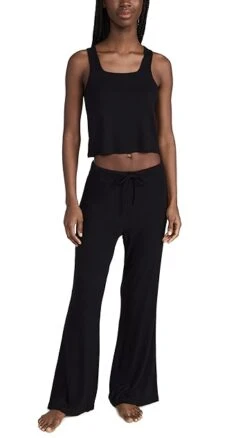 Make the most of your downtime in this monochrome Honeydew Intimates loungewear set, which pairs a cropped tank top with high-rise wide-leg pants.