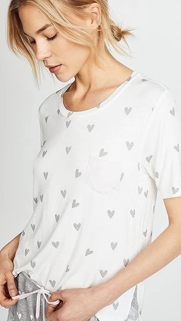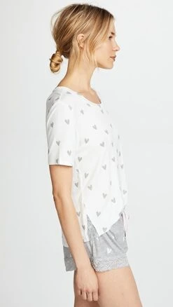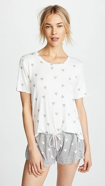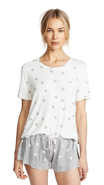 Hearts, hearts, hearts! If that’s what you’re after (and who isn’t?), this soft-and-sweet Honeydew Intimates pajama set has you covered.