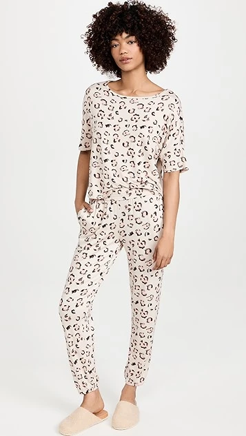 A comfy Honeydew Intimates pajama set for summer, featuring a short-sleeve top, lightweight fabric, and a playful print.