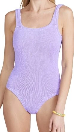 Go for a dip in style in this Hunza G one-piece, which is cut from crinkly fabric and infused with understated color.