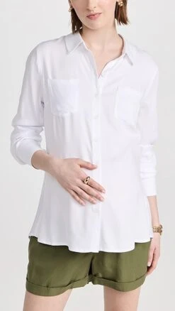 - Collared neckline and button placket