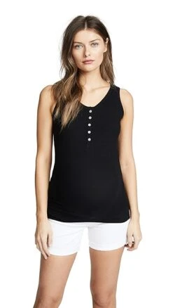A classic Ingrid & Isabel henley tank to wear when you know your little one’s mealtime is coming up. The double-layered bust offers coverage while you nurse—and the fabric feels as soft as a cloud.
