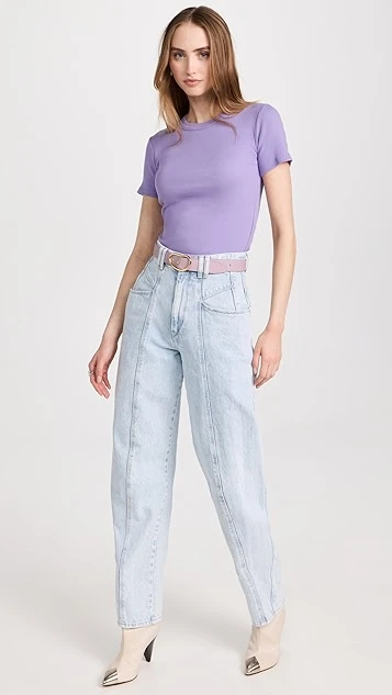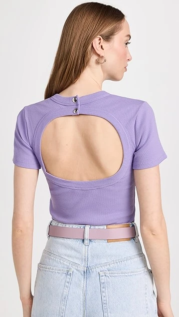 A beyond-basic basic, this slim IRO tee is designed with a circular back cutout for a more polished feel. Play up the sophisticated style of this piece by pairing it with tailored trousers.