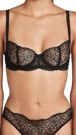 Sheer lace and supportive underwire compose this Journelle balconette bra, while adjustable straps ensure a comfortable fit.