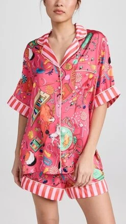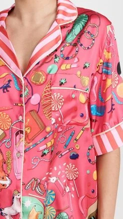 Crafted from the label’s special silky fabric and styled with notched lapels, these striking Karen Mabon pajamas will be a fun addition to your bedtime wardrobe.