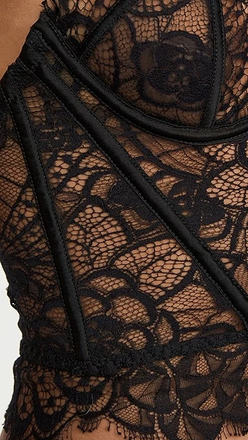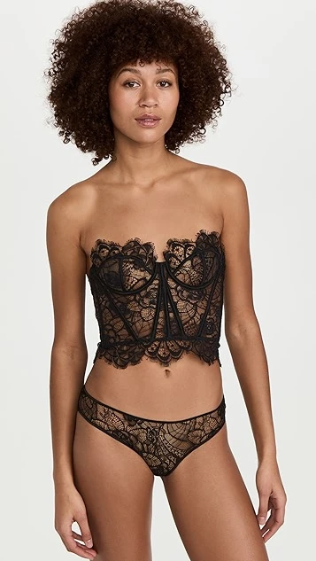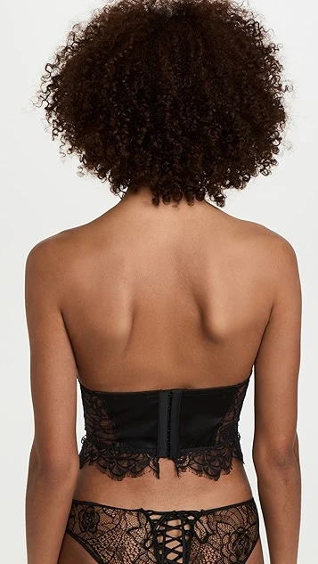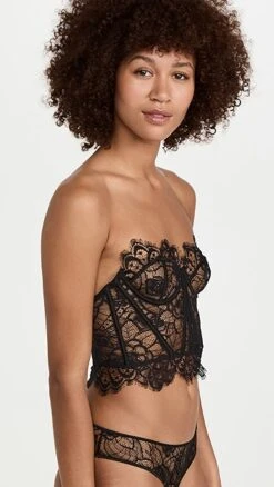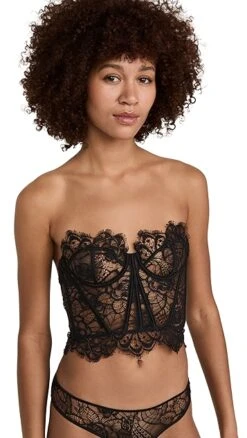 A strapless Kiki De Montparnasse bustier top, crafted from sheer black lace.
