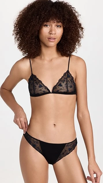 - Sheer mesh trim with floral embroidery