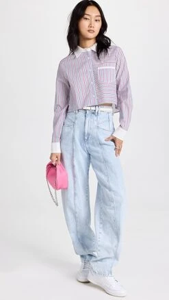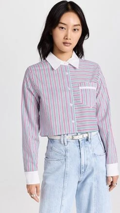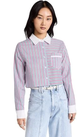 Cut from crisp cotton and dressed up with colorful stripes, this cropped Le Superbe blouse will be a polished addition to your off-duty wardrobe. Pair it with faded denim for a charmingly eclectic look.