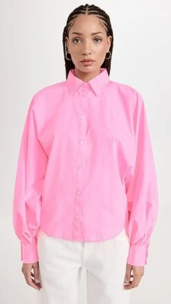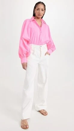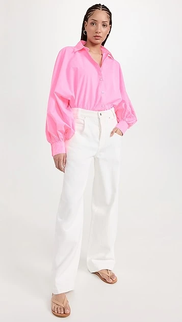 - Long balloon sleeves with button cuffs