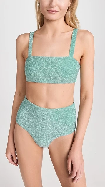 Minimalist yet distinct, MIKOH’s Kano bikini top features a clean-lined silhouette and a metallic sheen for an extra touch of shine. Round out your seaside look with the brand’s matching bottoms.