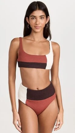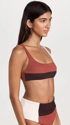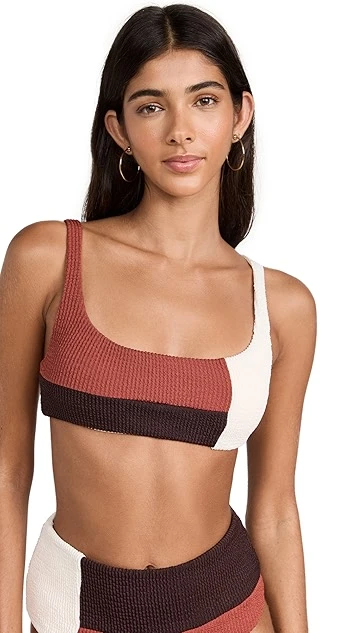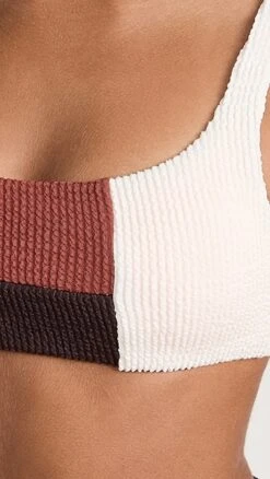 A unique option for your next beach excursion, this MINKPINK bikini top features ribbed, crinkly fabric and a colorblock motif in a muted color scheme.