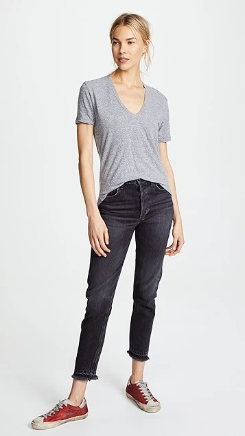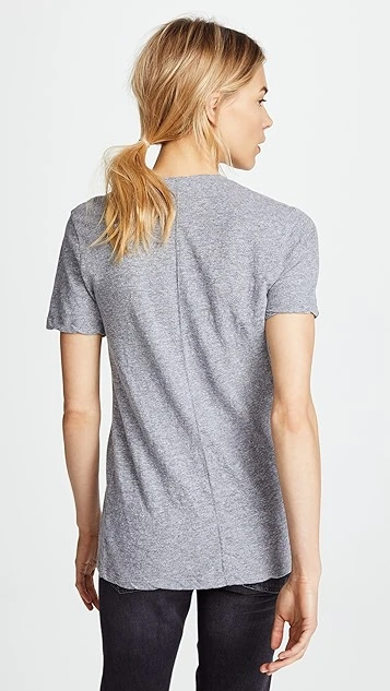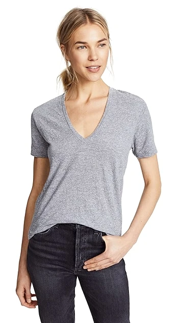 Speckled slubs accent a loose, V-neck jersey tee, giving a simple piece a touch of texture.