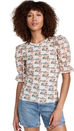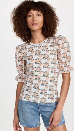 A romantic alternative to your usual tee, this Nation LTD top is crafted from lightweight, super-soft slubbed jersey, and features puff sleeves and a classic floral print.