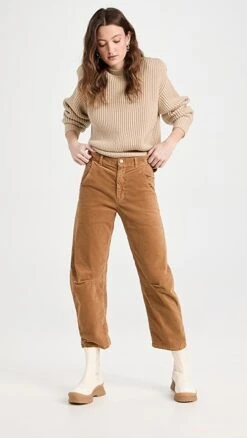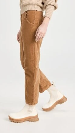 An alternative to your usual denim, fresh from the specialists in innovative basics at Nili Lotan. These bowed-leg jeans gain a unique look from darted knees and lowered back pockets, and gain a vintage-inspired look from brown velvet.