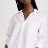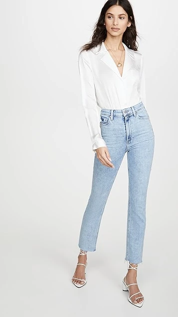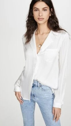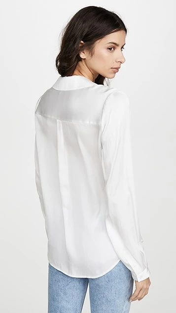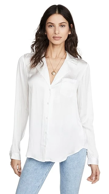 A prettier take on a classic button-down shirt from PAIGE, featuring smooth, silky fabric, a deep-V neckline, and notched lapels. This versatile piece is really easy to work into layered and stand-alone looks alike.