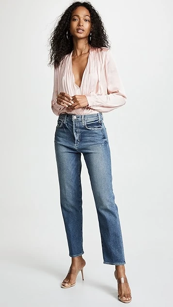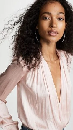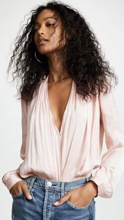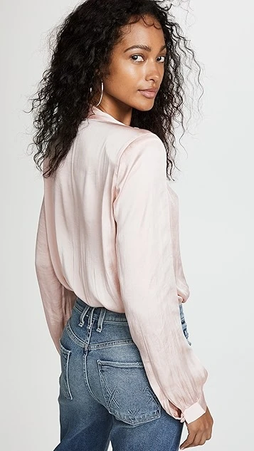 An elevated bodysuit from PAIGE, featuring a silky wrap top that looks fantastic both with casual jeans or a tidy pencil skirt.