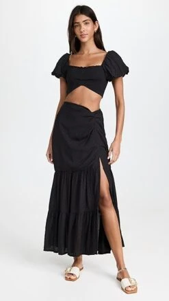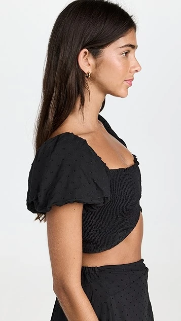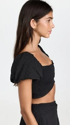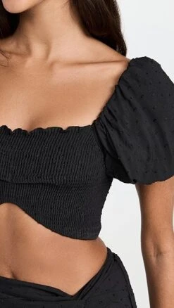 - Short puff sleeves with elastic cuffs