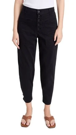 An understated pair of Pistola Denim trousers for all occasions, featuring a cropped cut, a high rise, and button tabs at the cuffs.