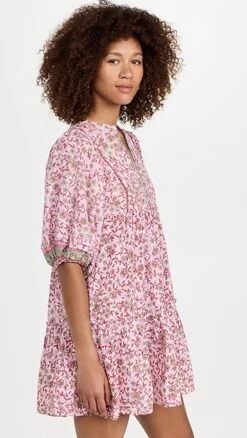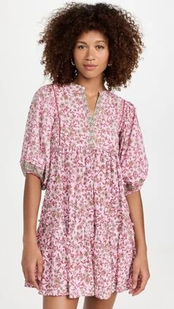- V neckline and elbow-length puff sleeves with elastic cuffs
