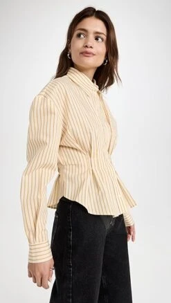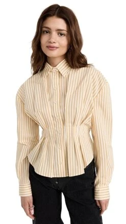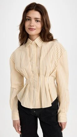 - Peplum silhouette with pleated waist