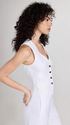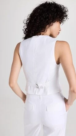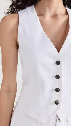 A bright-white linen blend composes this polished Rag & Bone Priya vest. A buckle strap provides an adjustable fit. Wear yours with tonal trousers or jeans from the label’s collection.