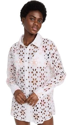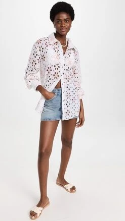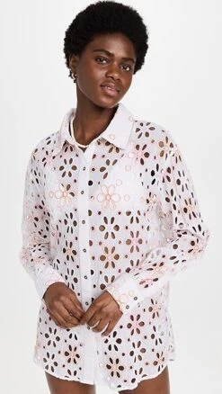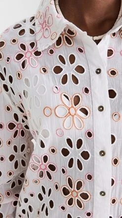 - Fabric: Mid-weight, non-stretch eyelet weave