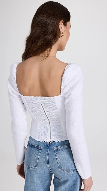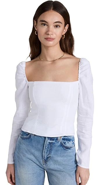 - Long sleeves with puff shoulders