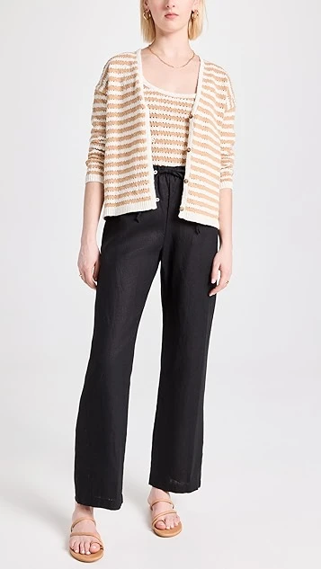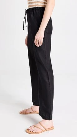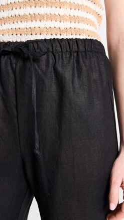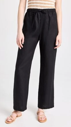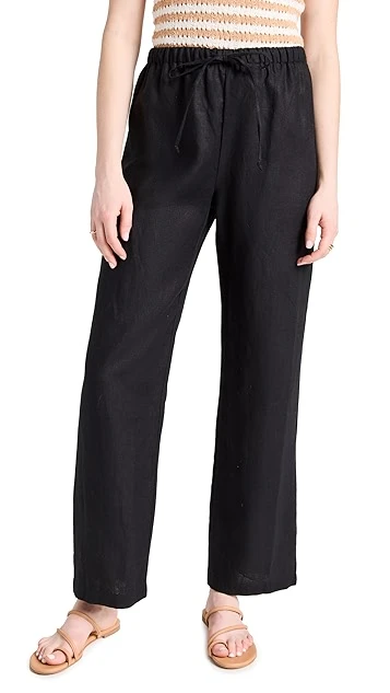Keep your warm-weather look polished with these black Reformation pants, which feature breezy linen, a tidy straight leg cut, and a comfortable elastic waistband.