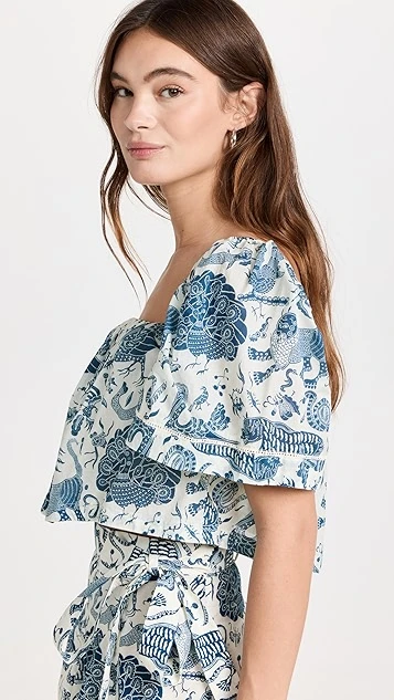 Another stand-out piece from RHODE, this Roja top features lightweight fabric, a relaxed fit, and exotic patterning. Pair it with the label’s matching shorts for the full effect.