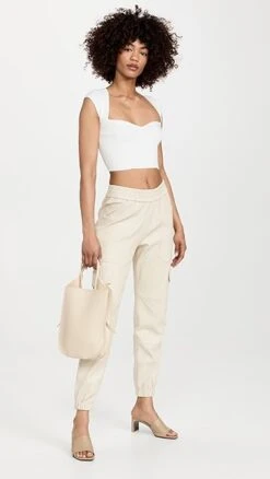 Understated yet distinct, this figure-skimming Jonathan Simkhai crop top cuts a romantic silhouette with tidy cap sleeves and a sweetheart neckline. Sporty sweatpants and crisp trousers will both work equally well with this piece.