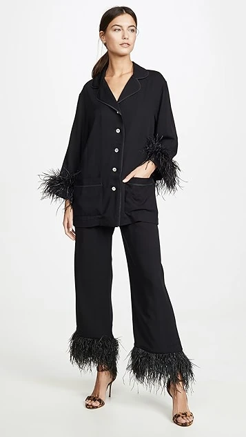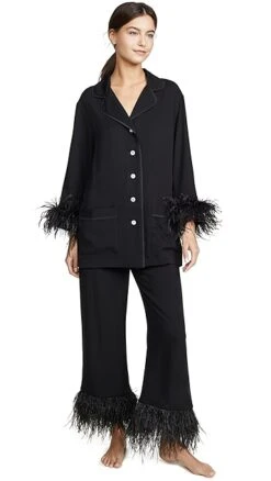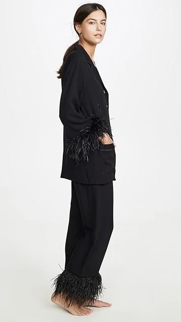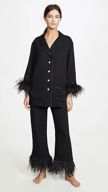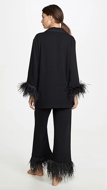 Get cozy in these classically styled Sleeper pajamas, which feel extra luxurious thanks to tufts of wispy feathers at the cuffs.